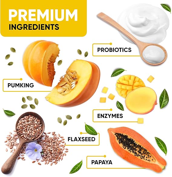 - HEALTHY NATURALS -These vet-formulated dog treats pack active naturals like Pumpkin, Broccoli, Brussel Sprouts, Cabbage, Organic Chamomile, Parsley, Flaxseed, and Cayenne Pepper. Innovative formula works as coprophagia stool eating deterrent. Formula changes taste, smell and attractiveness of stool.