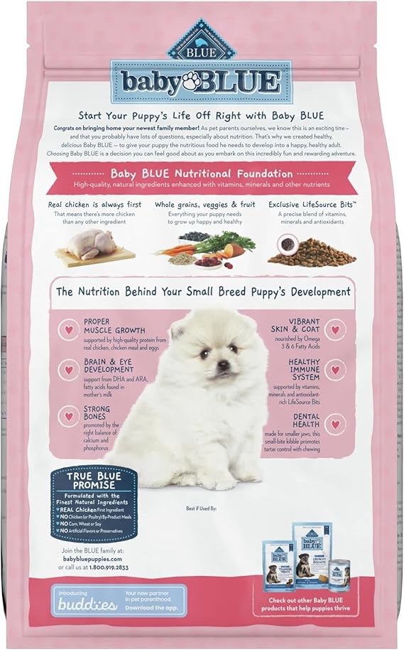 Blue Buffalo Baby Blue Natural Small Breed Puppy Dry Dog Food, Healthy Growth Formula with DHA, Chicken and Oatmeal Recipe, 4-lb Bag
