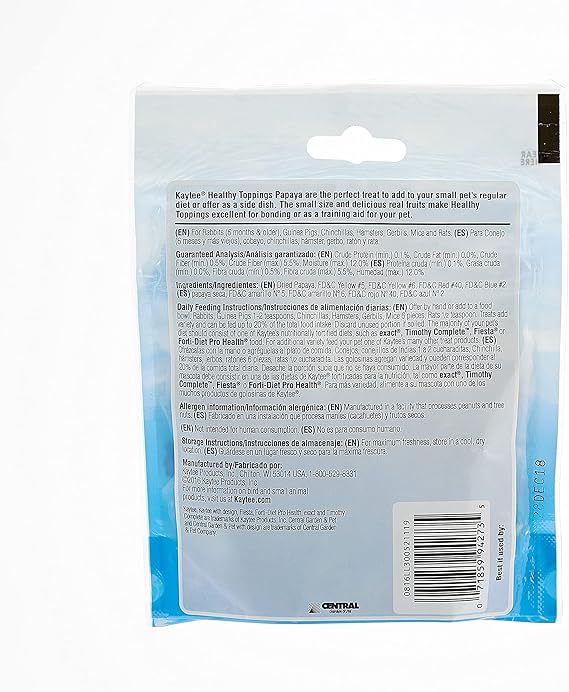 Kaytee Fiesta Healthy Toppings Papaya Treat For Small Animals, 2.5-Oz Bag