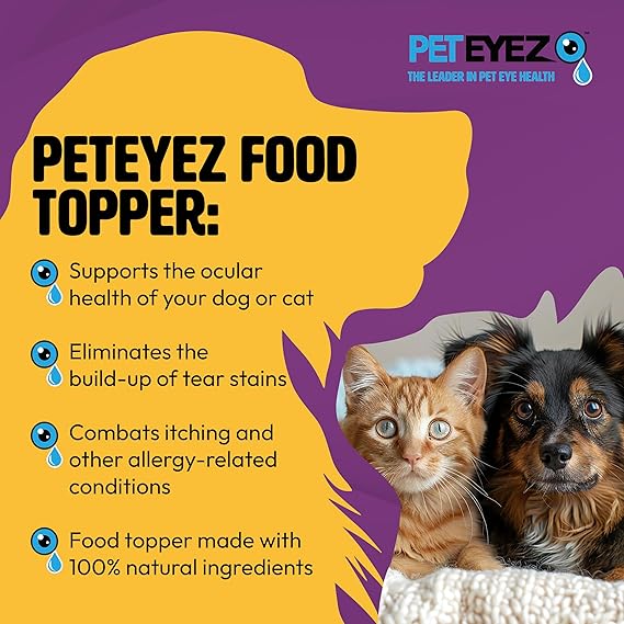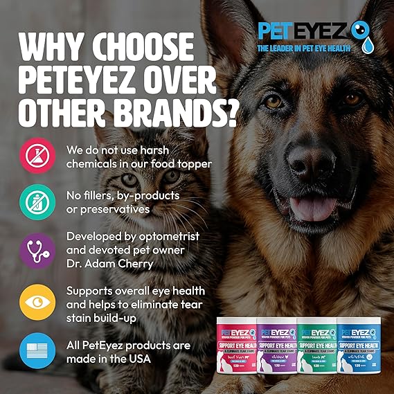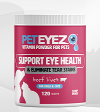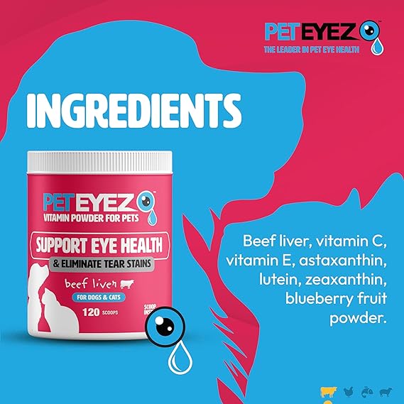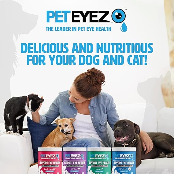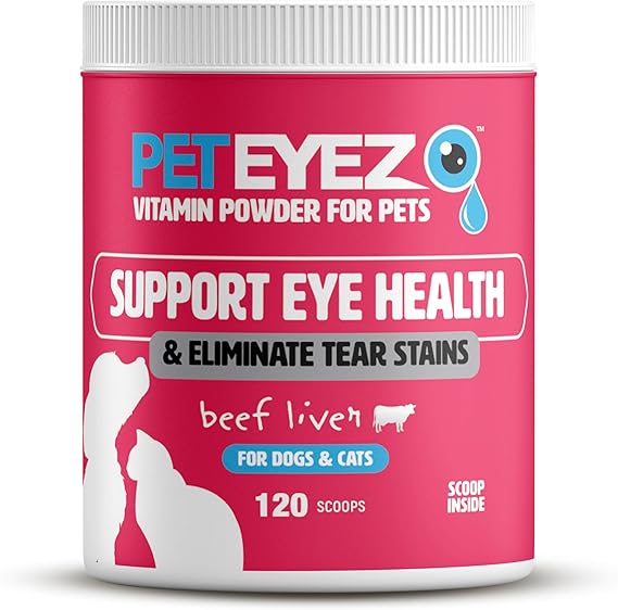 Pet Eyez Vitamin Powder for Pets - Supports Eye Health & Reduces Tear Stain Buildup - 100% Natural Food Topper for Dogs & Cats with Superfoods, Antioxidants & Nutrients - Beef Flavor - 120 Scoops