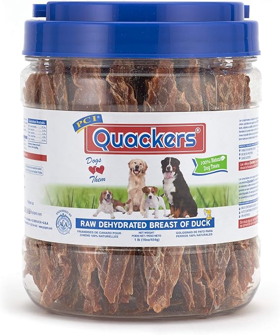 PCI Pet Center Inc. Quackers Raw Dehydrated Duck Breast Dog Treats, 1 Pound Container