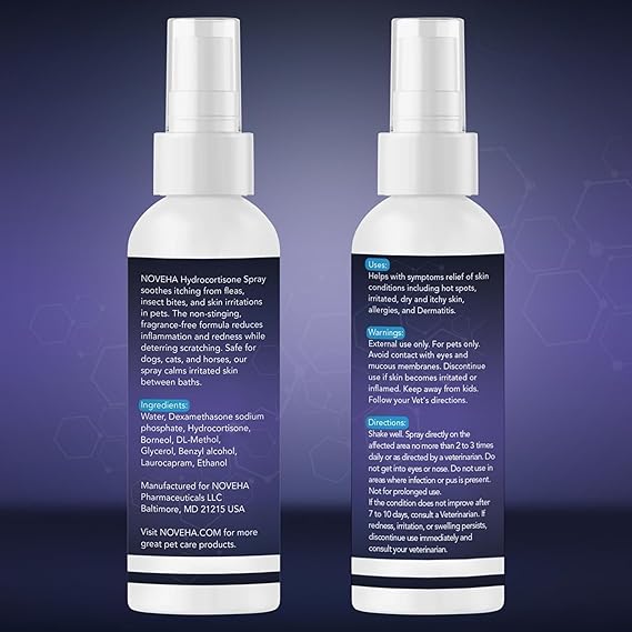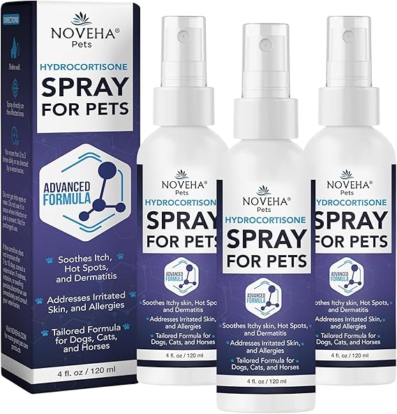 NOVEHA 1% Hydrocortisone Spray for Dogs, Cats, Horses - Hot Spot Treatment & Itch Relief for Pets - Advanced Formula Soothes Itch, Hot Spots, Dermatitis, Irritated Dry Itchy Skin & Allergies - 120mL