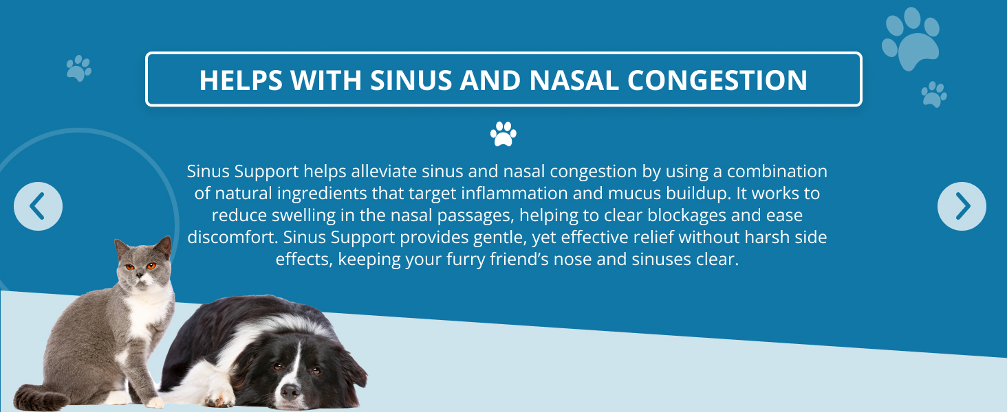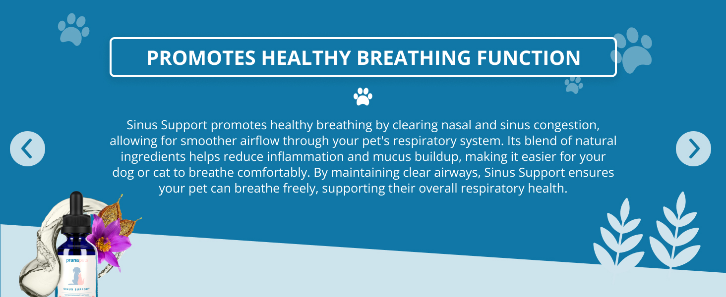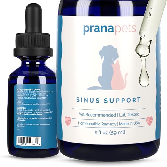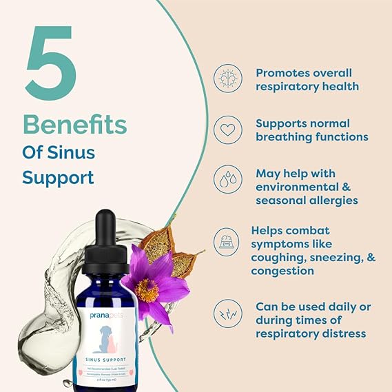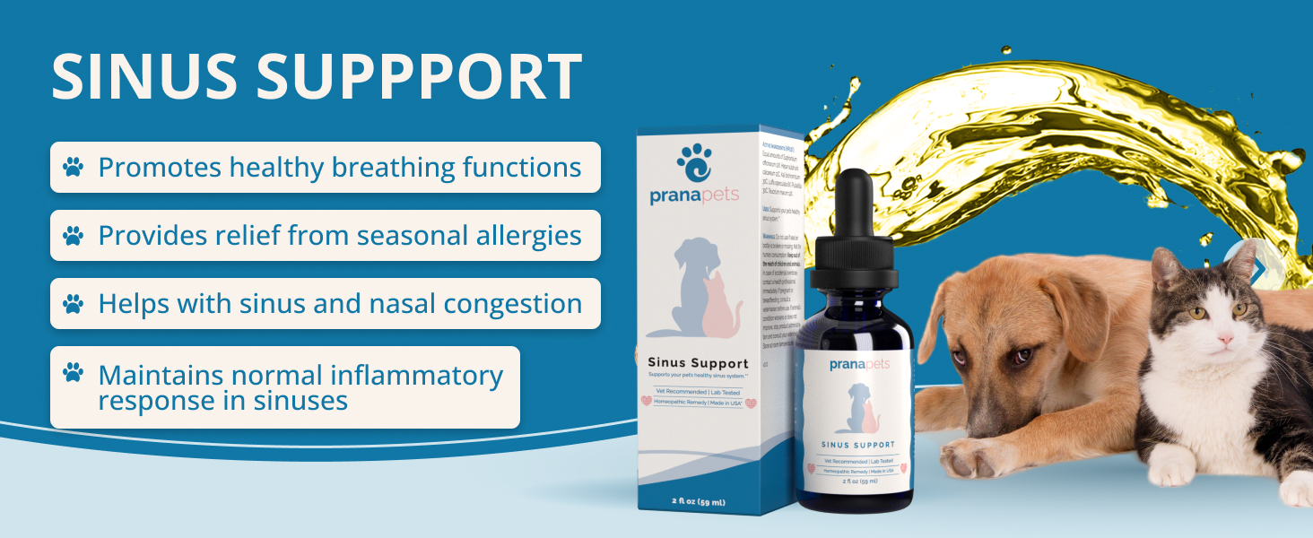 - SINUS SUPPORT - Prana Pets Sinus Support liquid supplement promotes the overall wellbeing of dogs and cats suffering from sinus and congestion issues. Simply administer the recommended drops into their mouth or add it to their wet or dry food daily.