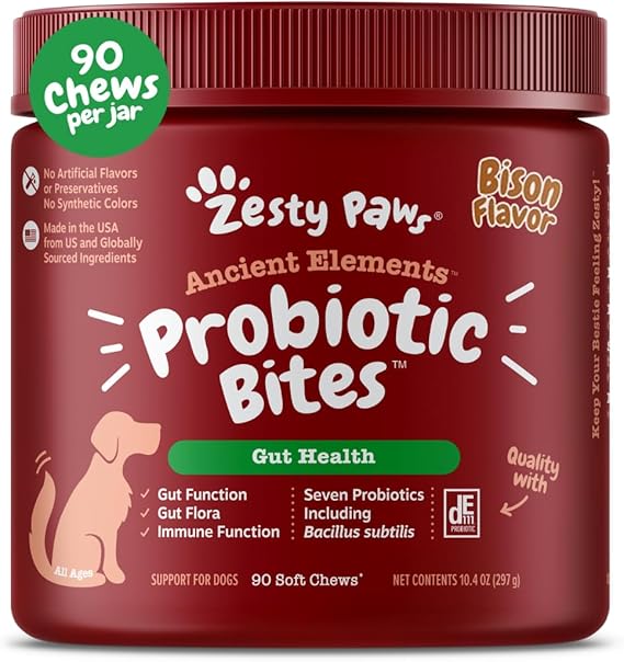Zesty Paws Probiotics for Dogs, Digestive Enzymes Gut Flora, Digestive Health, Diarrhea & Bowel Support, DE111, Dog Probiotics Soft Chew for Pet Immune System, Chicken, 90 Ct