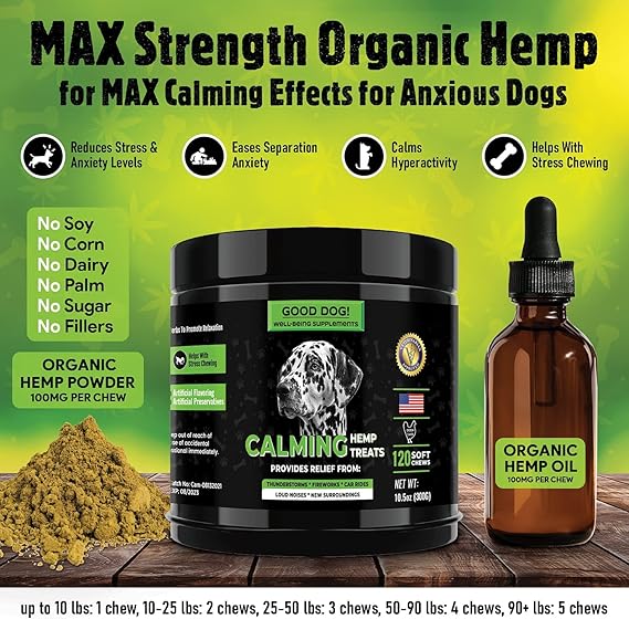 Good Dog! Hemp Chews for Dogs - Max Strength Organic Hemp for Max Calming and Anxiety Relief in Any Stressful Situation - 120 Soft Hemp Relaxant Chews for Dogs