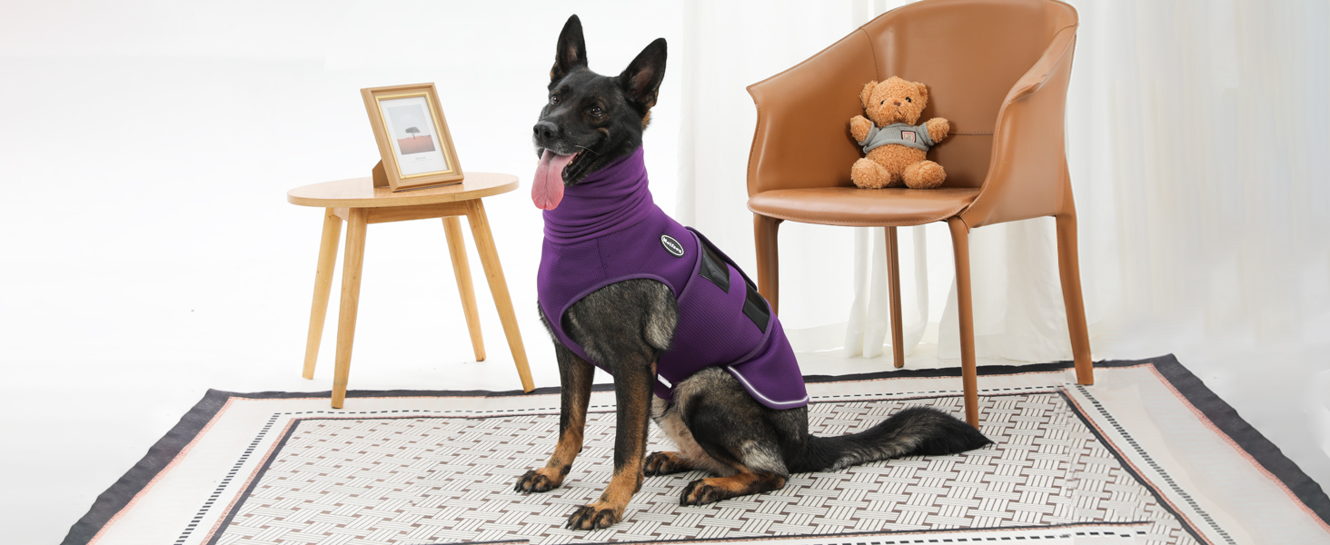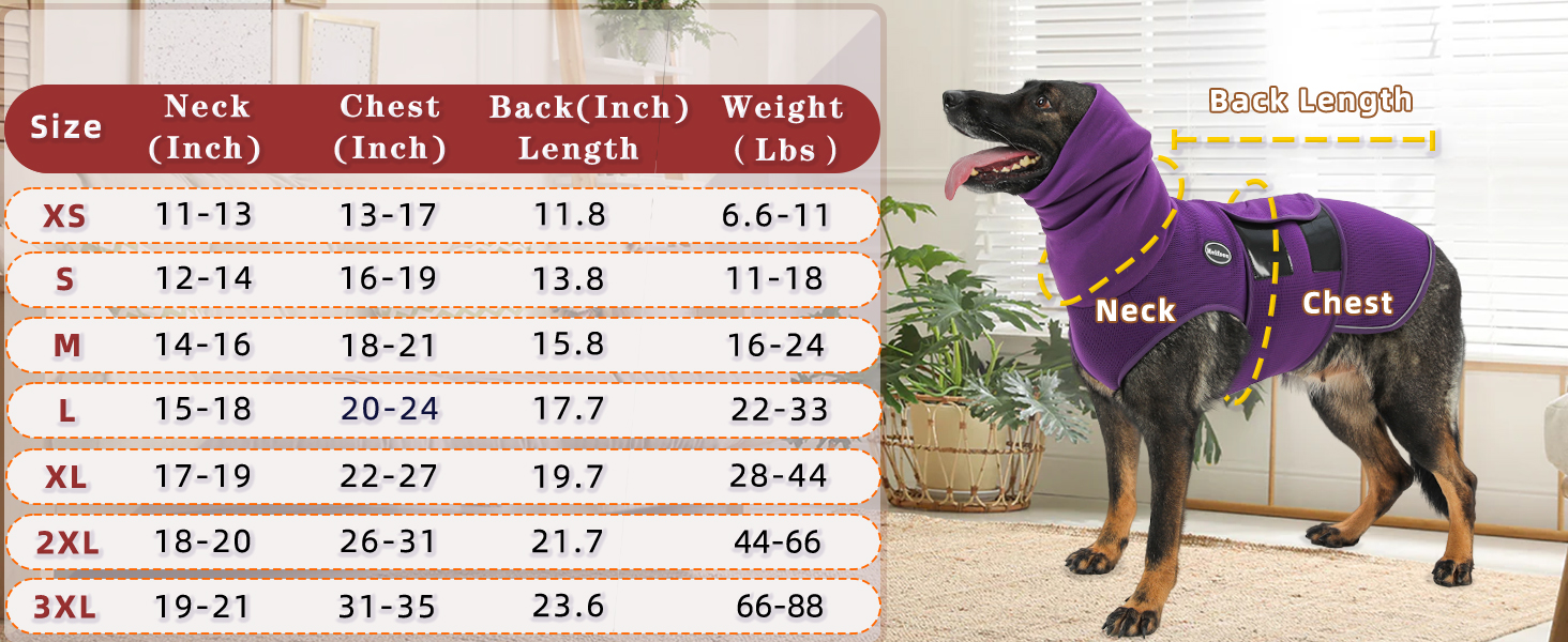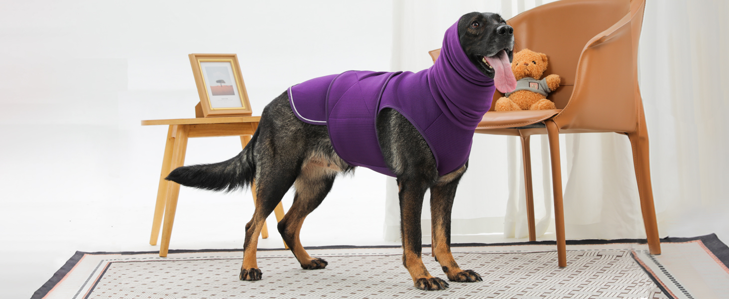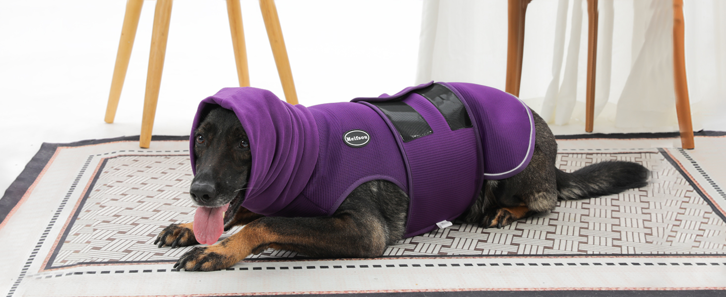 Dog Anxiety Vest with Hood, Skin-Friendly Thunder Jacket for Dogs, All-in-One Dog Calming Shirt with Hood for Thunder, Fireworks, Separation - Keep Pet Calm Without Medicine, Purple, XL