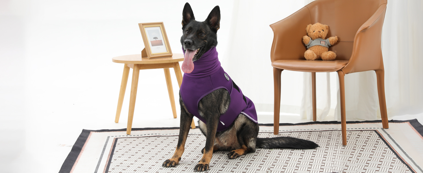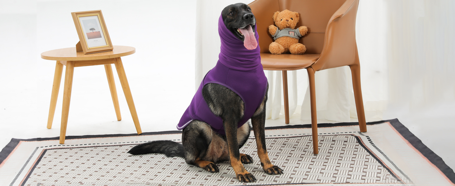 - 【PREMIUM MATERIALS PRIORITISING DOG COMFORT】 - The entire dog thunder jacket is made from 90% polyester and 10% spandex. The body section utilises a breathable mesh design for maximum airflow, allowing extended wear. The dog headband is crafted from soft, elastic velvet fleece, ensuring comfort around the head and ears without constriction. The superior fabric enable dogs to move freely, lie down, or roll over without feeling restricted or under undue pressure. Comfortable for extended wear