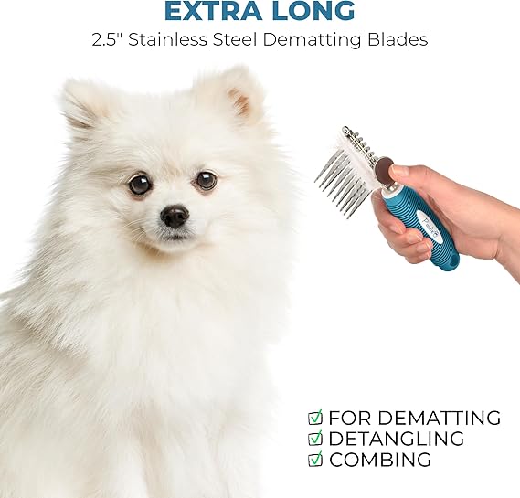 - 2-in-1 Detangler Comb: Simplify the grooming process by using our dual length pet combs for dematting, detangling & combing. It features both long & short metal teeth, so it cuts time in HALF!