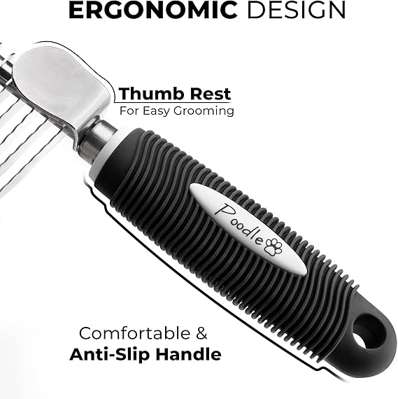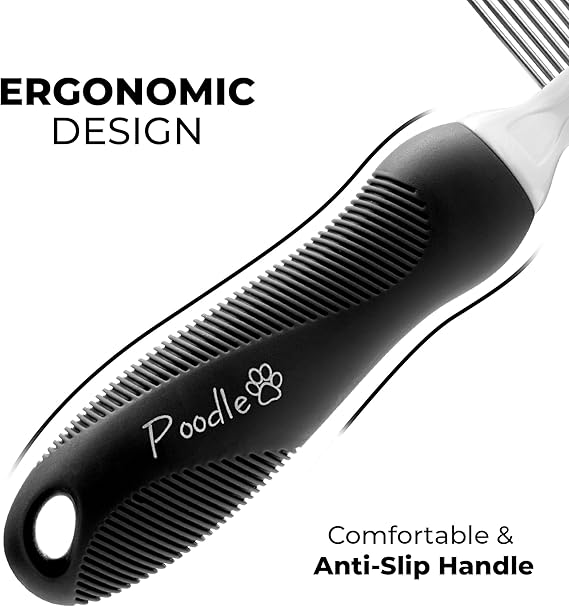 Poodle Pet Detangling Pet Comb with Long & Short Stainless Steel Teeth for Removing Matted Fur, Knots & Tangles - Detangler Tool Accessories for Safe & Gentle DIY Dog & Cat Grooming