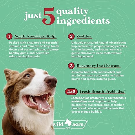 Wild Acre Dental Powder for Dogs - Dog Breath Freshener Dental Powder for Teeth Cleaning Plaque Off, Dental Care for Dogs, Tartar Remover for Teeth - Fresh Breath Probiotics
