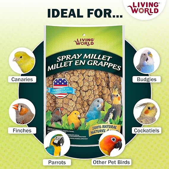 Introducing Living World Spray Millet, the ultimate snack to keep your feathered friend happy and entertained! Perfect for parakeets, finches, canaries, and other small birds, this naturally delicious treat is packed with essential nutrients and straight-from-nature goodness. Freshly harvested from the wild, Living World Spray Millet offers a healthy, all-natural snack that’s sure to delight. Your bird will enjoy hours of fun nibbling away at this tasty, wholesome treat—keeping them busy and satisfied. Give your bird a taste of the wild with Living World Spray Millet!