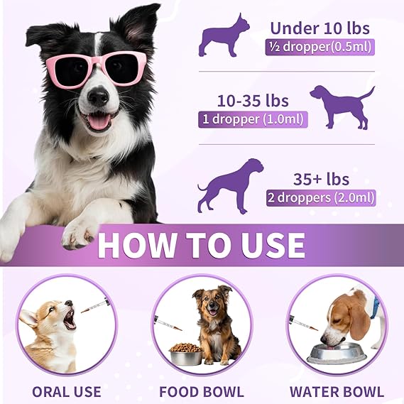 - Easy to Use - Food Topper or Oral Drops: Simply add the allergy drops to your dog's food, treats, or administer directly by mouth. Designed for daily use to provide consistent support for your pet's wellness.