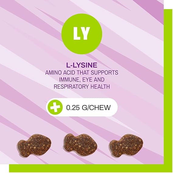 Pet Naturals Lysine for Cats is your all-in-one immune booster, respiratory support, and natural cat probiotic blend. Each chicken-flavored chew delivers 250 mg pure L-lysine plus targeted feline UTI treatment support to maintain urinary tract comfort. Enhanced with vitamins for indoor cats, it also promotes a shiny coat, joint comfort, digestive balance, and cat allergy relief. Grain-free (no wheat/corn), gluten-free, and free of artificial colors/flavors—veterinarian-formulated and made in the USA. Ideal for kittens through seniors, and perfect for pet parents familiar with “Viralys lysine for cats” seeking an advanced urinary health solution.