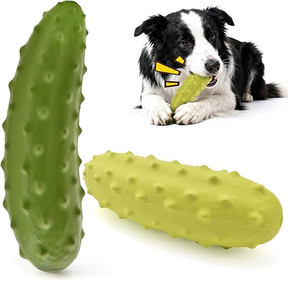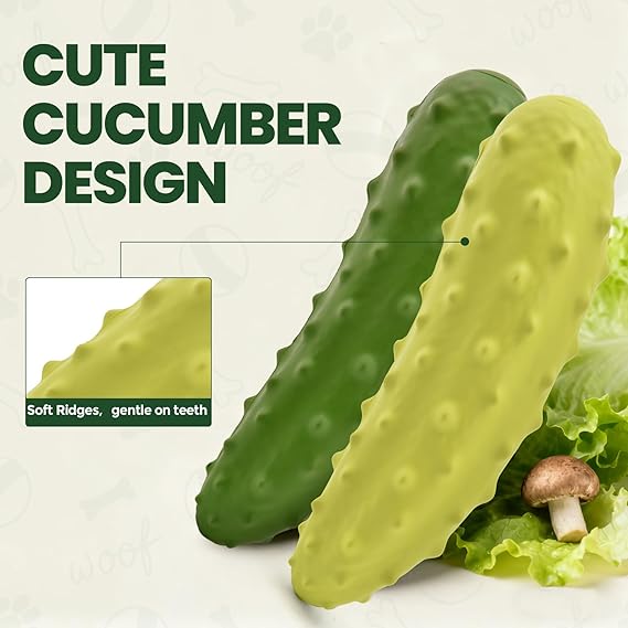 - 【Cute Fruit Modeling】 We turned the cucumber into an exciting squeaky dog chew toy that will add more fun to your best friend's chew toy collection. The unique cucumber shape and fun squeak sound offer a delightful 'veggie' experience for small medium large dogs.