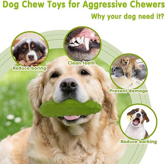 2PCS Tough Squeaky Dog Toys, Durable Dog Chew Toy with Natural Rubber, Teething Toys for Medium Large Breeds, Cucumber Pickle Shape, Yellow & Green
