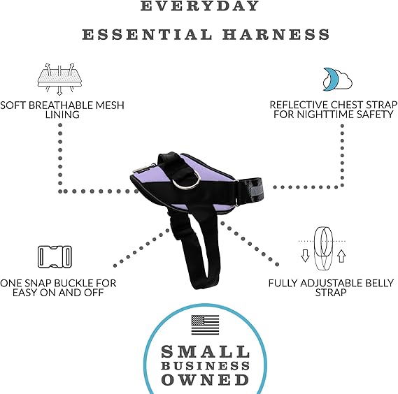 - FULLY ADJUSTABLE: Both the chest and belly strap are fully adjustable for the perfect fit for small dogs, medium dogs and large dogs. Our harness is also fully equipped for nighttime safety with a reflective chest strap and reflective trim lining that outlines our harness helping to keep your dog safe anytime, day or night.