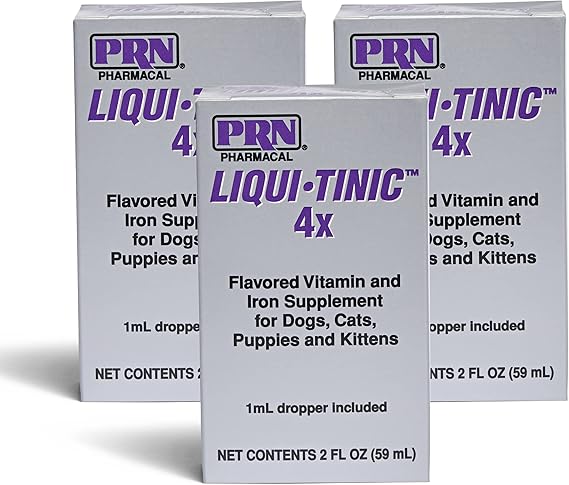 PRN Pharmacal Liqui-Tinic 4X - Iron & Vitamins Oral Nutritional Supplement for Pets- Liver-Flavored Supplement with Iron & B-Complex Vitamins to Support Wellness - 2 fl oz (3 Pack)