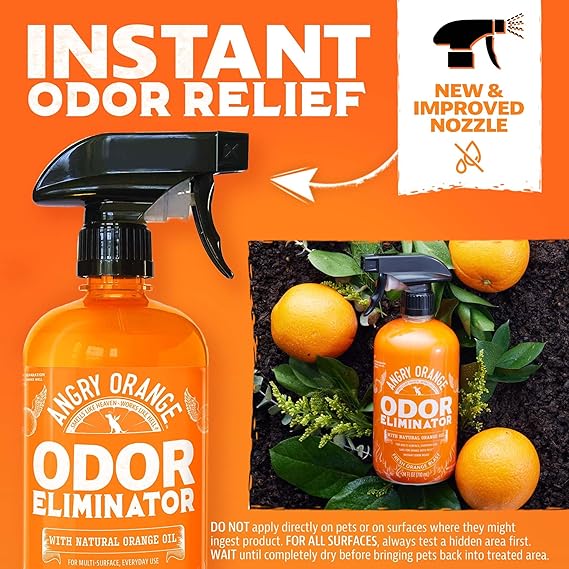 ANGRY ORANGE Pet Odor Eliminator for Dog and Cat Urine, Carpet Stains, and Strong Smells - Citrus Cleaner with Natural Orange Oil - 24 oz