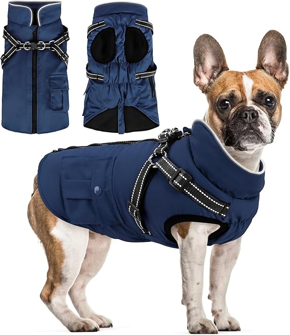 Dog Winter Coat with Harness Built-in | Waterproof Dog Jacket with Zipper & Fleece Lining | Reflective Cold Weather Coat for Small Medium Large Dogs