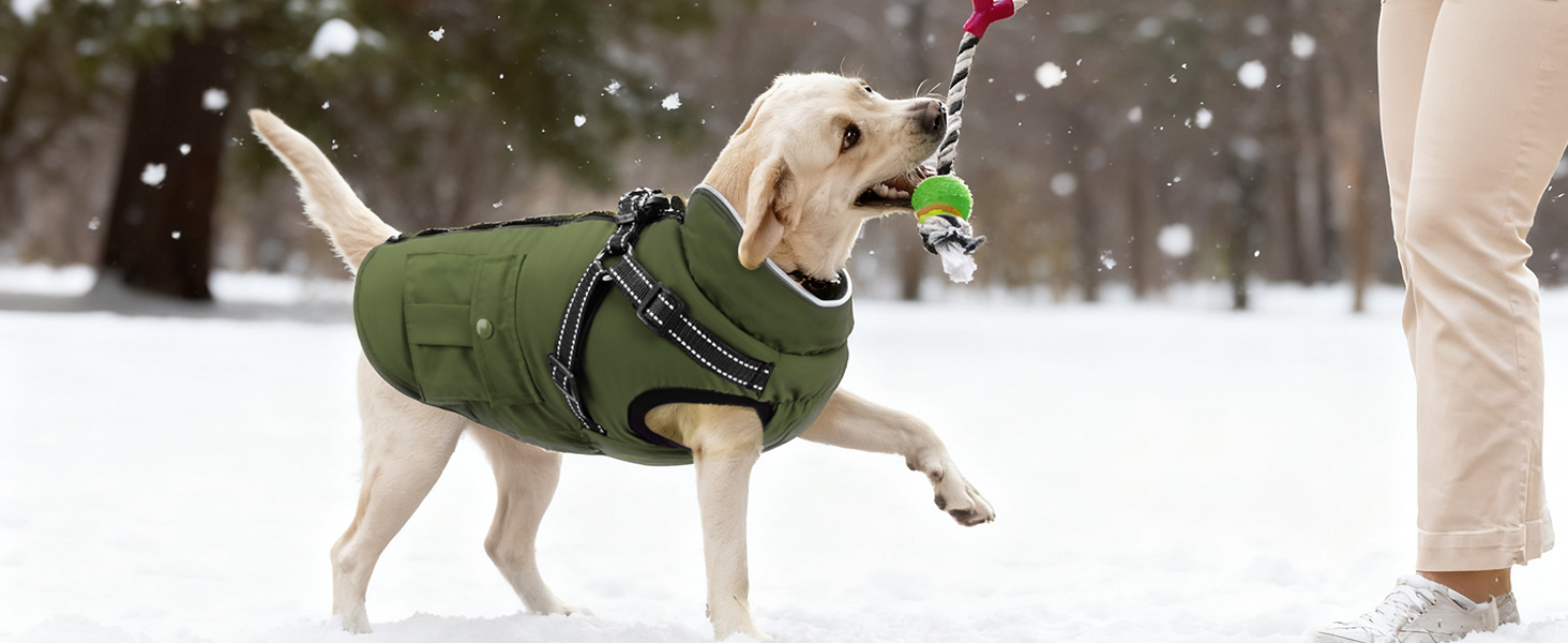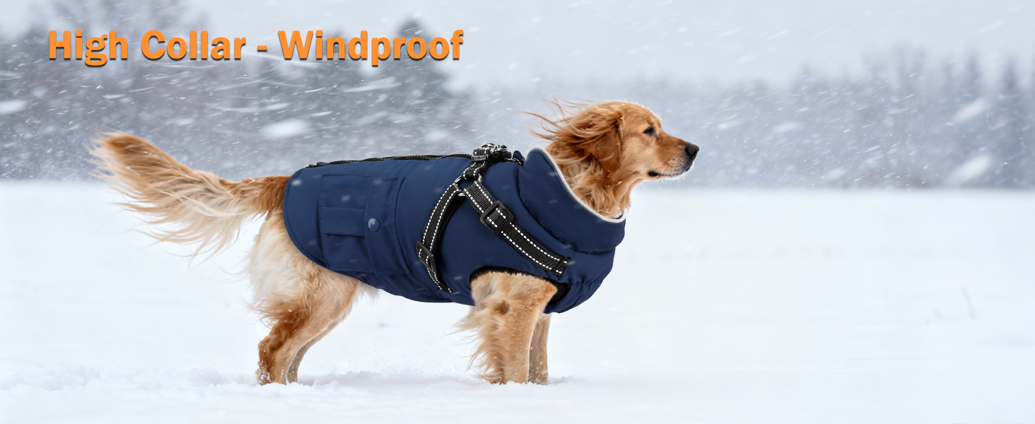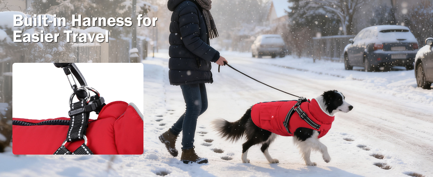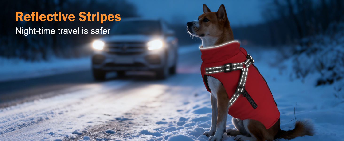 - Built-in Harness & Reflective Safety:More than just a dog jacket, this vest features a built-in harness with durable leash attachment points, eliminating the need for a separate harness. Enhanced with reflective strips, this dog winter jacket ensures your pet's visibility and safety during early morning or nighttime walks.