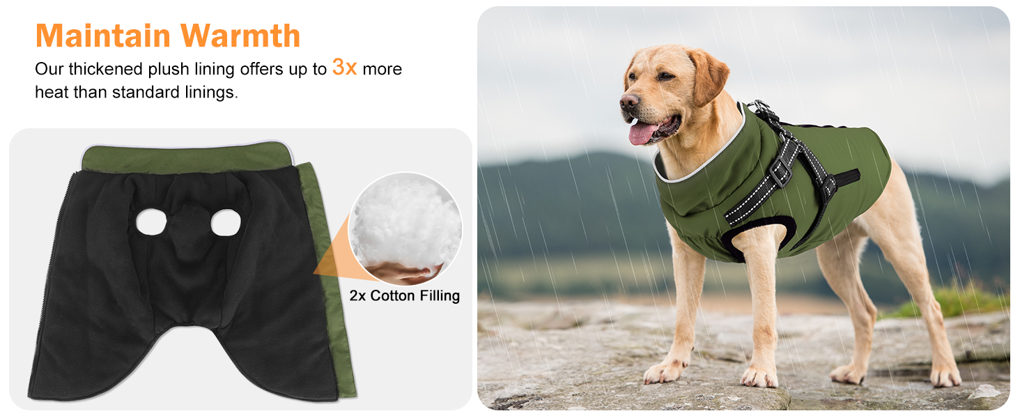 - All-Weather Protection & Warmth:This dog winter coat is crafted from high-quality, water-resistant fabric to serve as the ultimate dog cold weather coat. Lined with thick, plush fleece, this warm dog coat provides exceptional insulation against wind, rain, and snow, making it the perfect winter dog coat for all your outdoor adventures.
