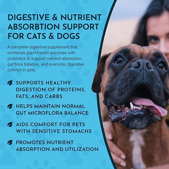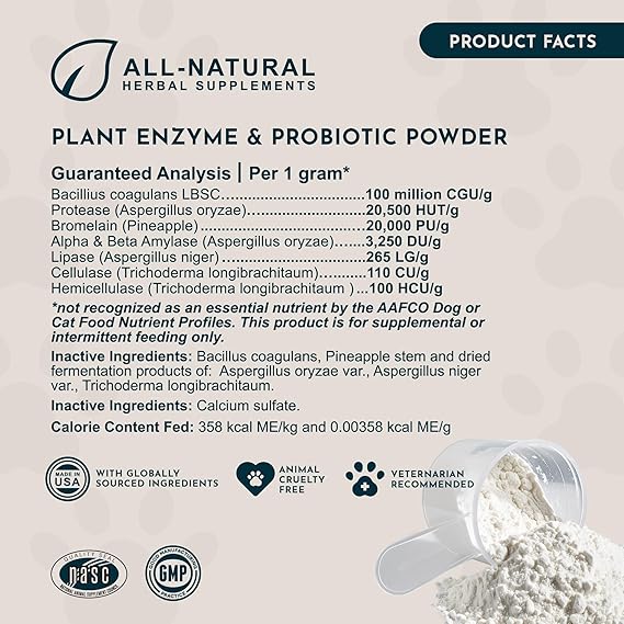 Animal Essentials Plant Enzyme & Probiotics - Digestive Enzymes for Dogs & Cats, Probiotics, Digestive Supplement, Veterinarian Recommended - 10.6 Oz