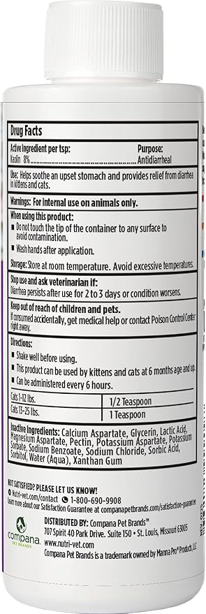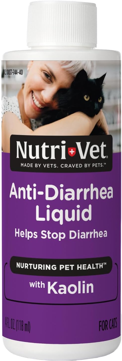 Nutri-Vet Anti-Diarrhea Liquid for Cats, Gentle Formula with Pectin and Kaolin, Soothes Upset Stomach and Irritated GI Tract, Slows Stool Passage, Cat Essentials, Detoxifies Bacterial Toxins, 4oz