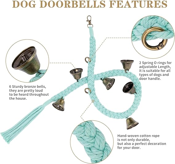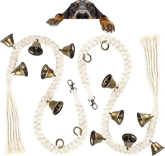 Door bell for dog is a great tool for potty training your furry friend. They are easy to use, durable, and cute in any home. These dog bells are designed to hang on the door knob or handle, and allow your pup to communicate when they need to go outside. The bells are made of premium quality materials and are built to last. They are loud enough to hear from other rooms. Dog training bells for potty are puppy essentials!