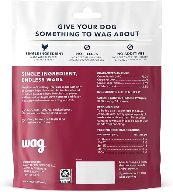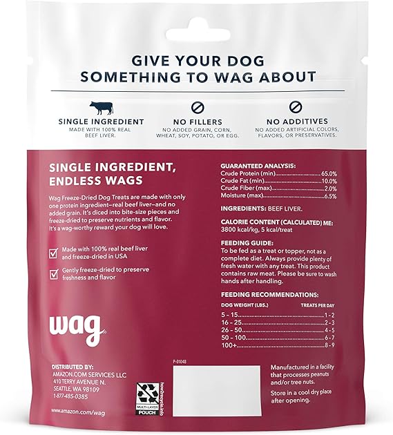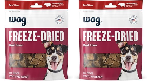 Amazon Brand - Wag Freeze-Dried Raw Single Ingredient Dog Treats, Lamb Liver, High Protein, Healthy Training Treats or Meal Topper for all Dogs, Grain-Free, 3.3oz