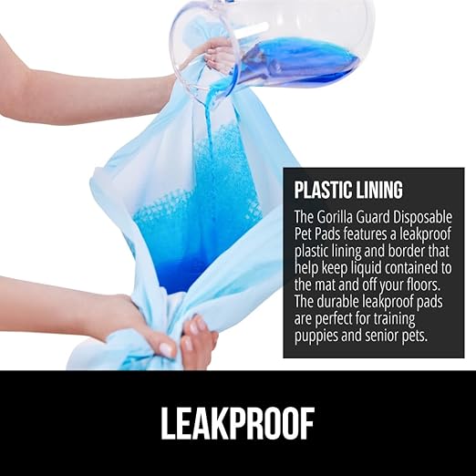 - 5-LAYER GUARD PROTECTION - ABSORBS UP TO 6.7 CUPS: Engineered for strength and performance, Gorilla Guard disposable pads feature ultra-absorbent 5-layer construction that locks in up to 6.7 cups of liquid to keep floors clean and dry. Perfect for puppy training and senior dog accidents