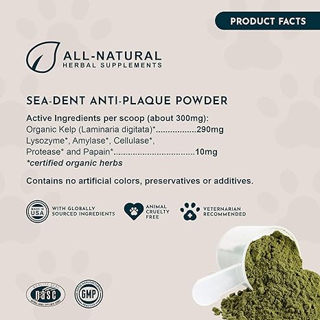 Animal Essentials SeaDent Kelp & Enzyme Plaque & Tarter Control for Dogs, 2.5 oz - Made in USA, Healthy Teeth & Gums