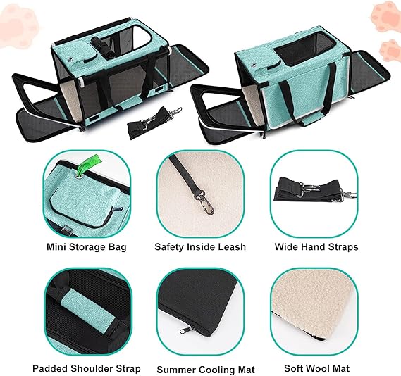 - 【Collapsible & Lightweight】The cat carrier can be folded into a pad to save your storage space and is easy to take out. Top and side entry.