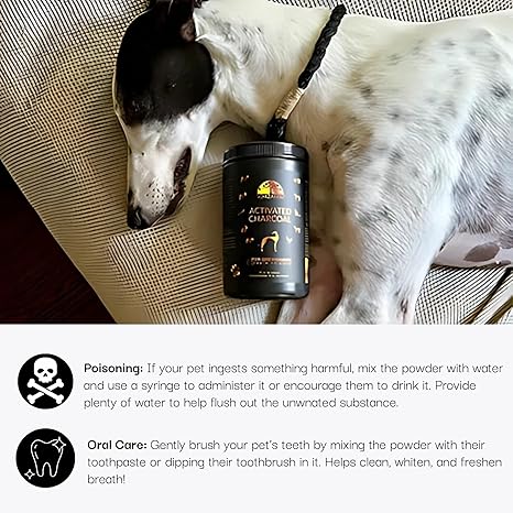 - HIGHEST QUALITY: Made of 100% pure activated charcoal, our powder is all-natural food grade certified, vegan & gluten free. It helps eliminate toxins from your animal friends’ digestive system, teeth, skin, hair, fur, etc.. It can be used externally and internally. , made exclusively from USA fir Trees - an all-natural & renewable source. Ideal for furry and feather-y animal friends, pets and farm animals as well.
