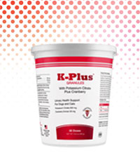 - UNIQUE AND ACTIVE INGREDIENTS - The K-Plus cranberry supplement for puppies active ingredient Potassium Citrate, helps promote proper urine mineral balance while supporting normal kidney detoxification and healthy waste elimination. Potassium Citrate helps maintain normal urine pH. When pH is normal in urine and less acidic, the kidneys don't form kidney stones. The other active ingredient, Cranberry, assists in maintaining normal bladder health and control.