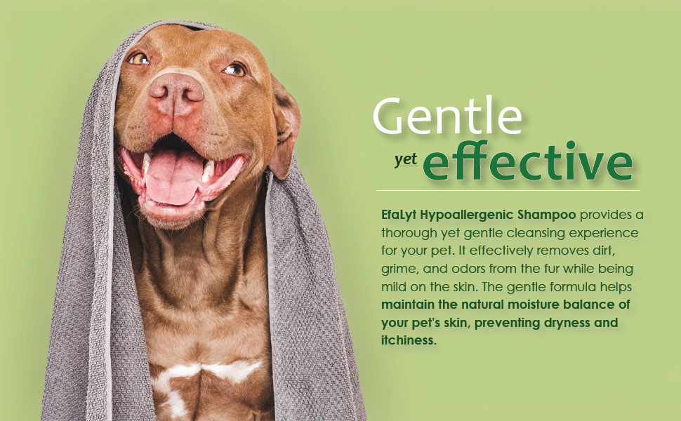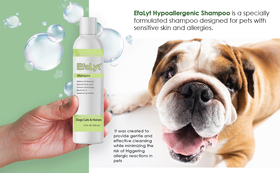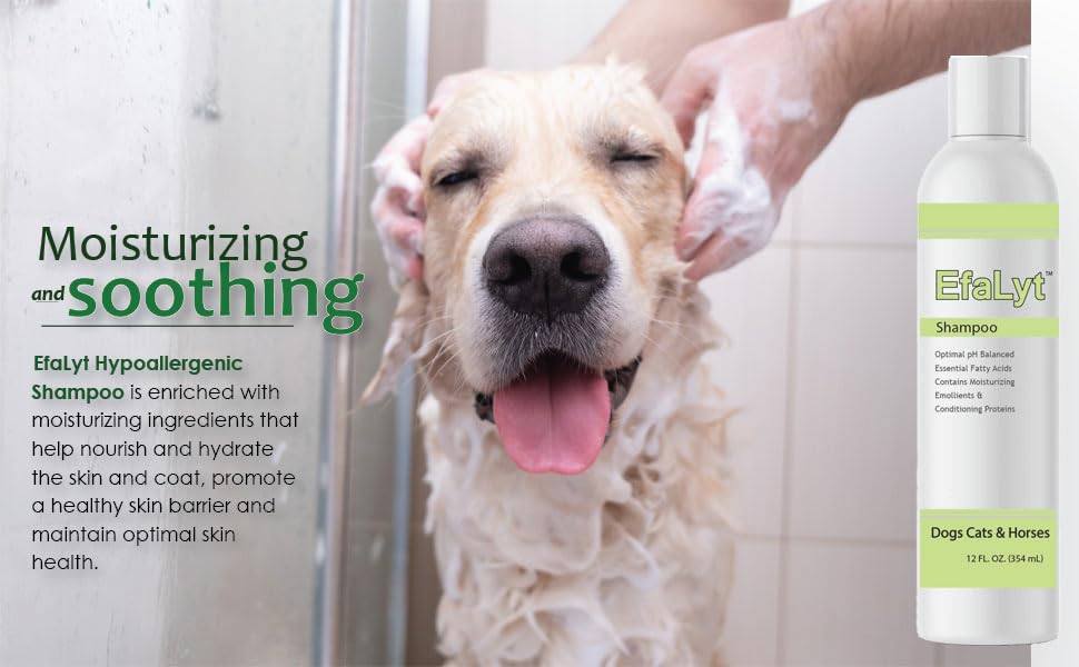 Use EfaLyt Hypoallergenic Shampoo for a gentle cleansing of your pets. This blend of emollients and proteins moisturize and condition. Essential fatty acids help nourish skin and control flaking and scaling.