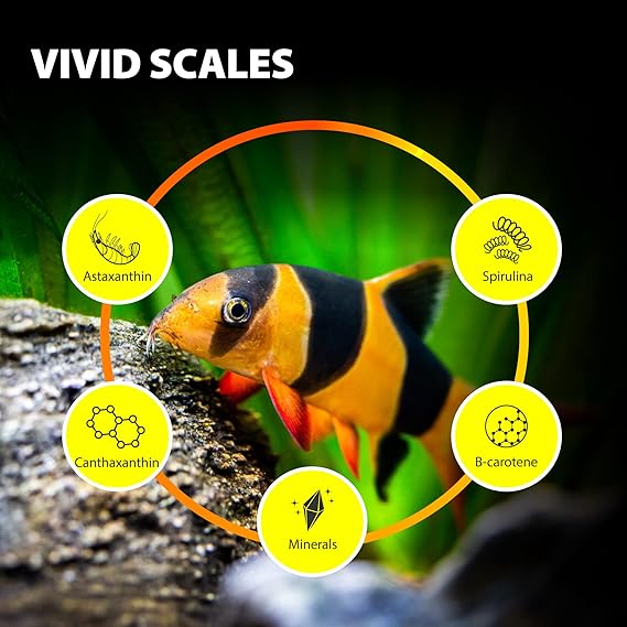 - Vivid scales: The one-stop-shop for vibrant colors and the long-term health of your fish and shrimps. Our food provides the perfect balance of nutrients for your fish and shrimps, promoting growth and the fish's beautiful color with brilliant shine. This gives fish even more attractive and vibrant appearance and helps to keep your fish healthy and thriving.