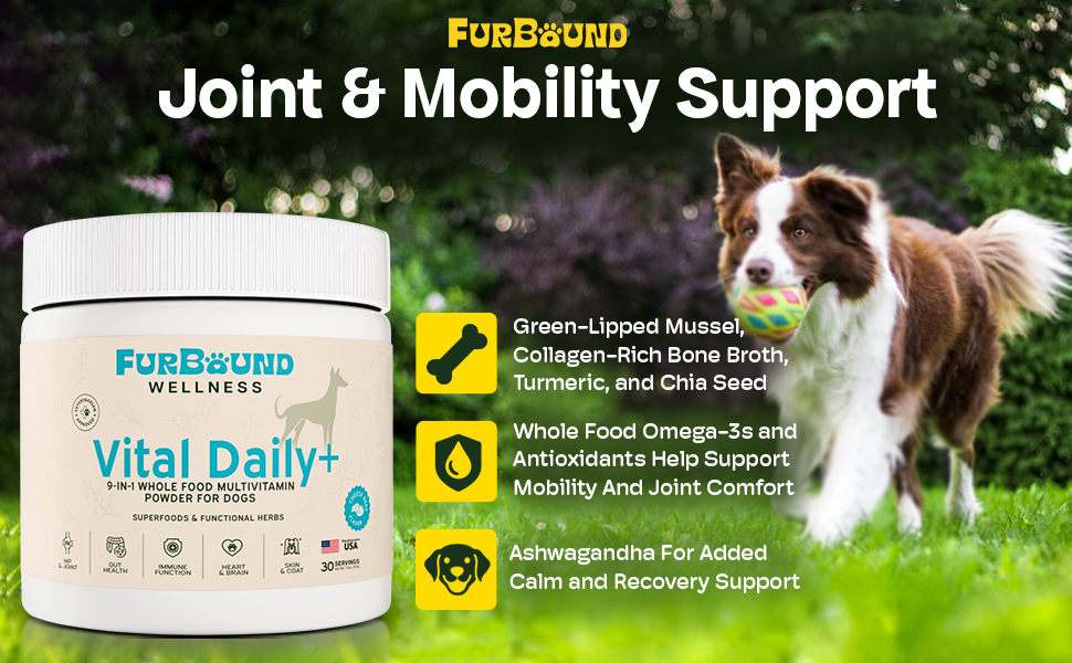 - ππ’ππ‘π§ & π π’πππππ§π¬ ππ’π ππ’π₯π§: Our multivitamin for dogs contains green-lipped mussel, collagen-rich bone broth, turmeric and omega-3s from krill and chia seed support joint health and mobility comfort, plus ashwagandha for calm recovery support.