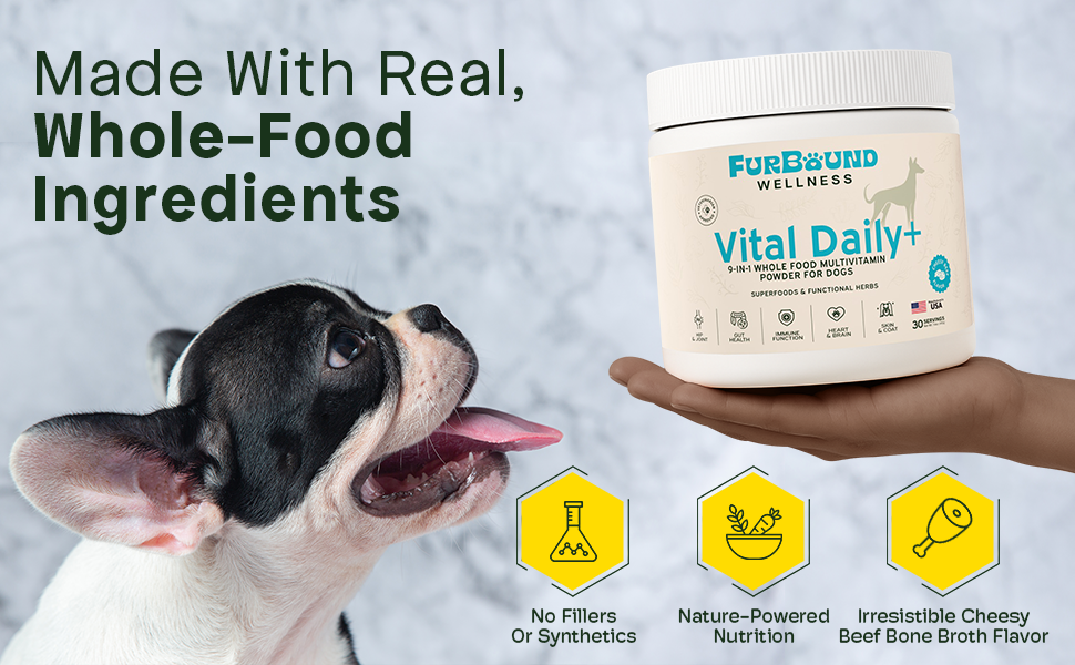 - π΅-ππ‘-π πππππ¬ π¦π¨π£π£π’π₯π§: Complete dog multivitamin with 38 whole-food ingredients targeting joints, digestion, skin & coat, immune system, cognition, detox, heart health, vitamins and antioxidants in one convenient scoop. We've optimized this dog vitamin powder formula to provide a better quality of life and longevity for your dogs!