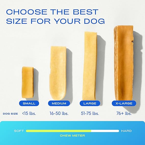 - YAK CHEWS FOR DOGS OF ALL SIZES: Our dog yak chews comes in small, medium, large, and extra large sizes. These Medium yak sticks for dogs are perfect for puppies and adults up to 50 lbs. They are gentle on teeth, making them an ideal chew treats for aggressive chewers.