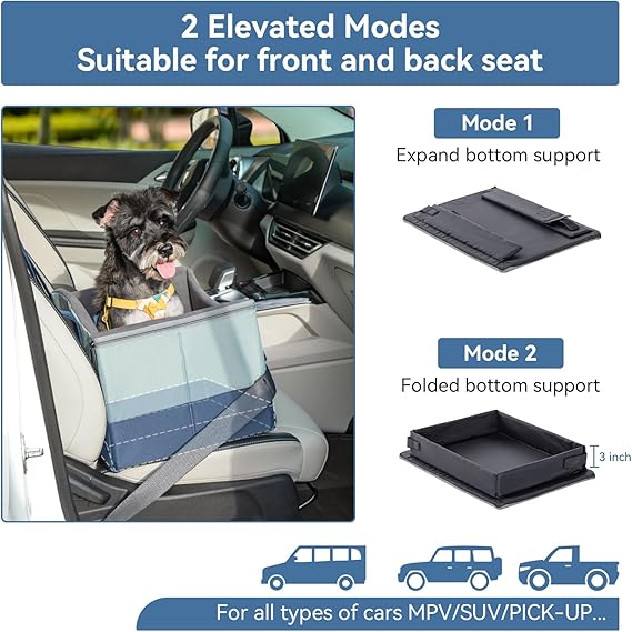 - Easy Setup & Universal Fit: The foldable, lightweight design allows for quick installation in most cars (front or back seat). No tools needed—just secure it with the adjustable straps and go! Perfect as a portable dog carseat for road trips and daily commutes