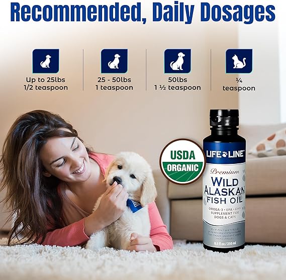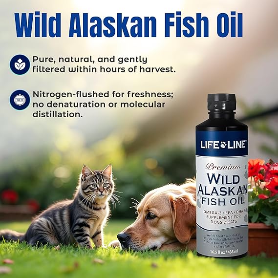 Life Line Pet Nutrition Wild Alaskan Fish Oil for Dogs and Cats 128oz - Omega 3 Fish Oil Supplement for Skin & Coat, Brain, Eye & Heart Health