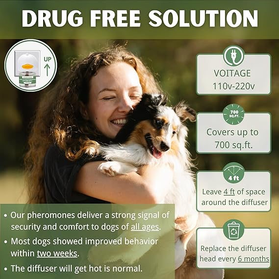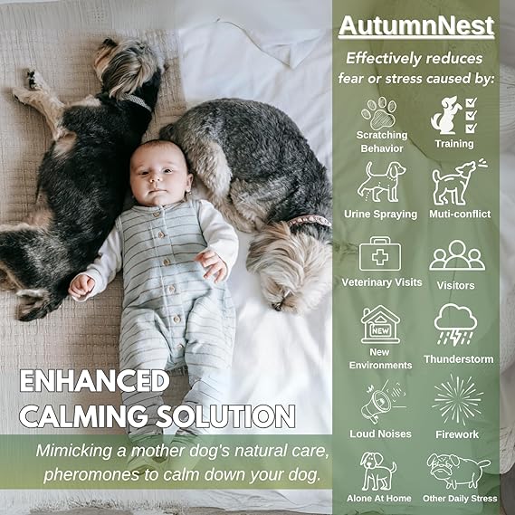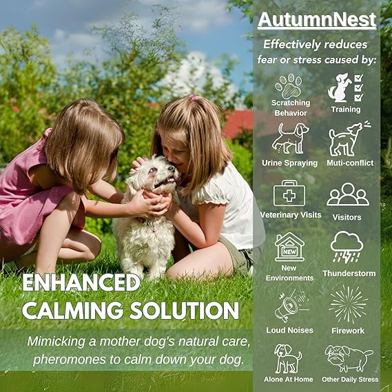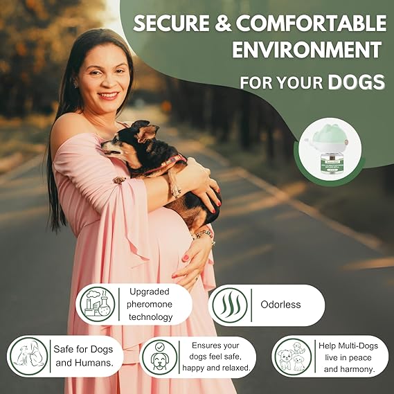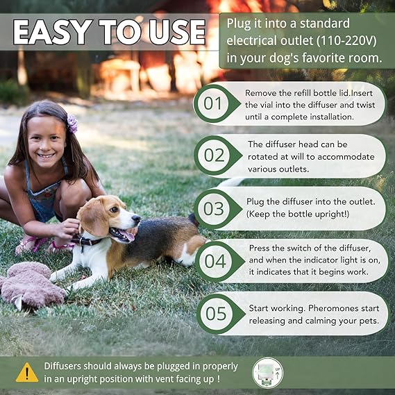 - 【Fast-Acting Behavioral Support - Dog Pheromones Calming Diffuser】 Formulated with natural pheromone technology, this dog pheromones calming diffuser helps reduce common signs of stress such as whining, barking, scratching, and destructive chewing. It's perfect for use during thunderstorms, loud noises, or when introducing new environments