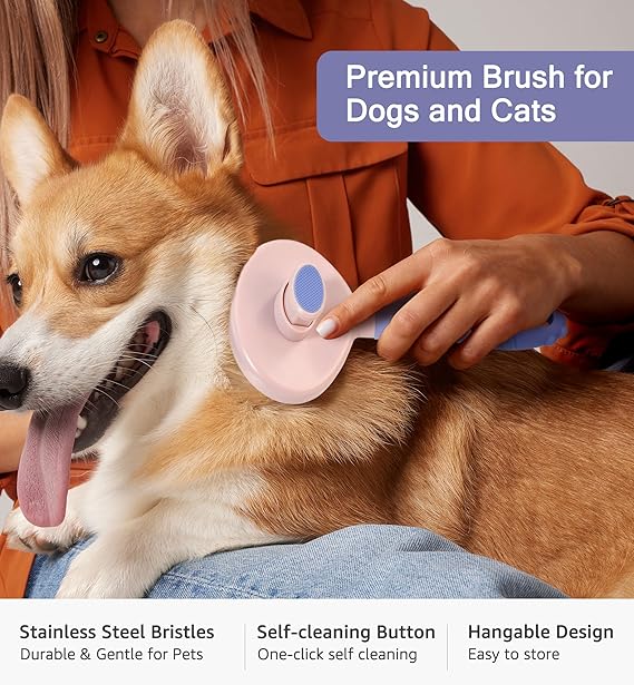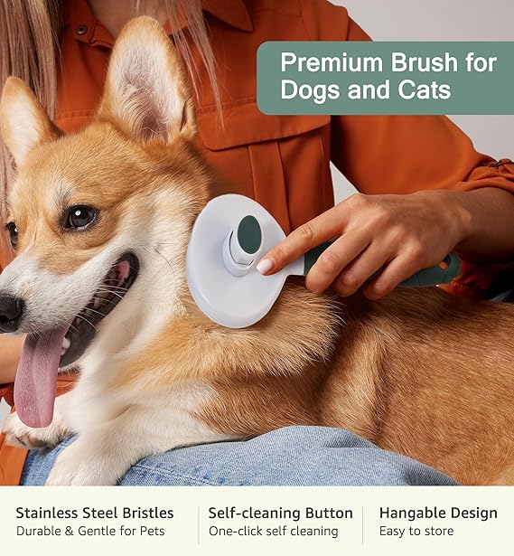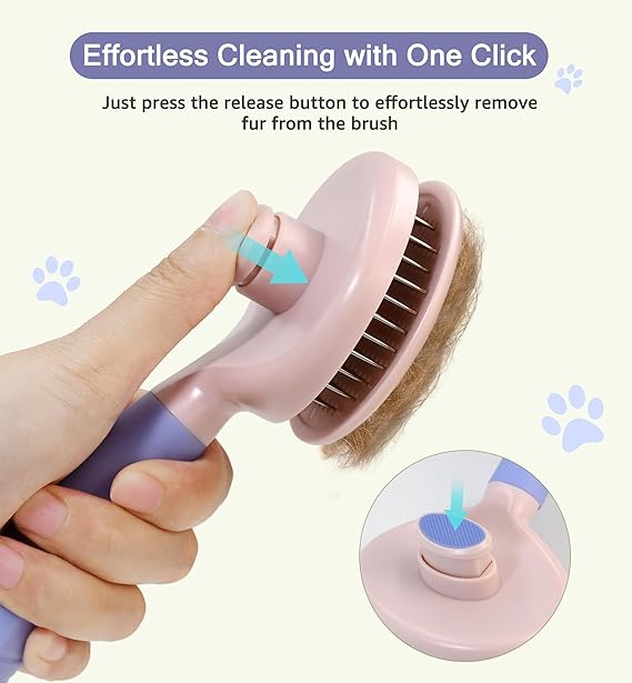 - Effortless One-Click Self-Cleaning: Enjoy hassle-free grooming with our innovative one-touch self-cleaning button. Easily remove trapped fur from the brush in seconds—just press the button and watch the hair lift away, keeping your hands clean and making tidy-up a breeze after every session.