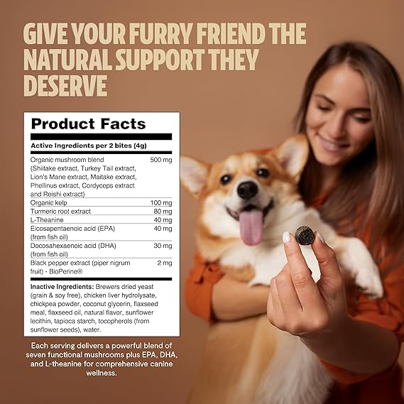- ENHANCED WITH ACTIVE NUTRIENTS - Our dog supplements are fortified with EPA & DHA for heart health, L-Theanine for natural relaxation, turmeric for joint support, and kelp for thyroid function. These dog calming chews deliver complete daily wellness support.
