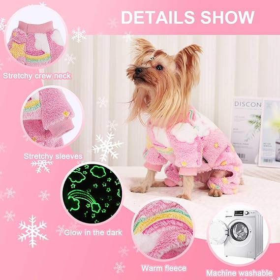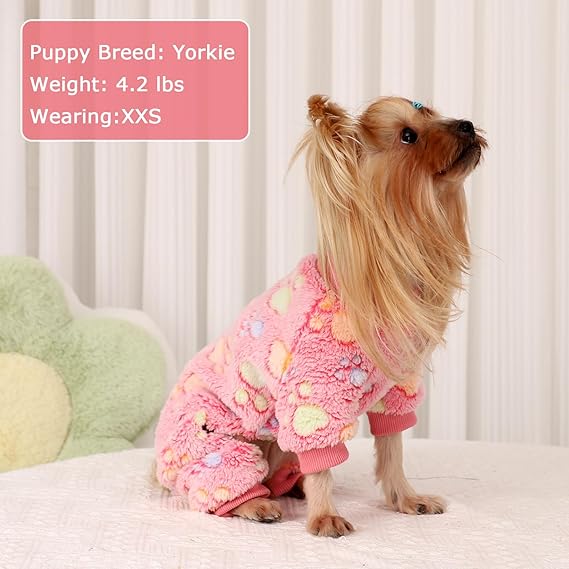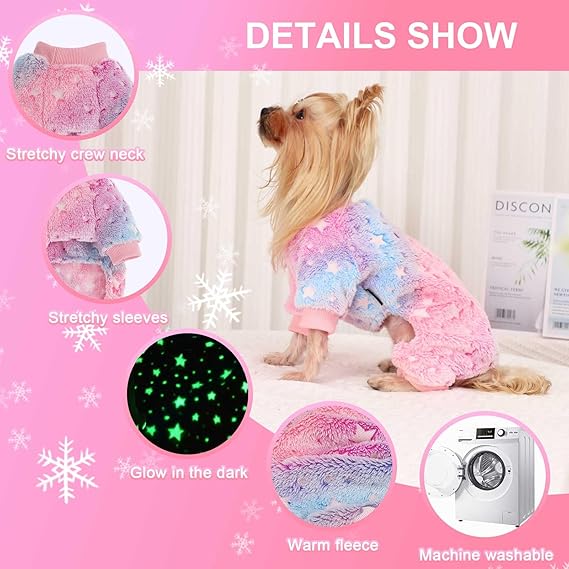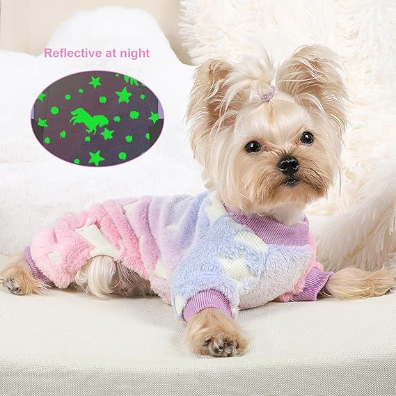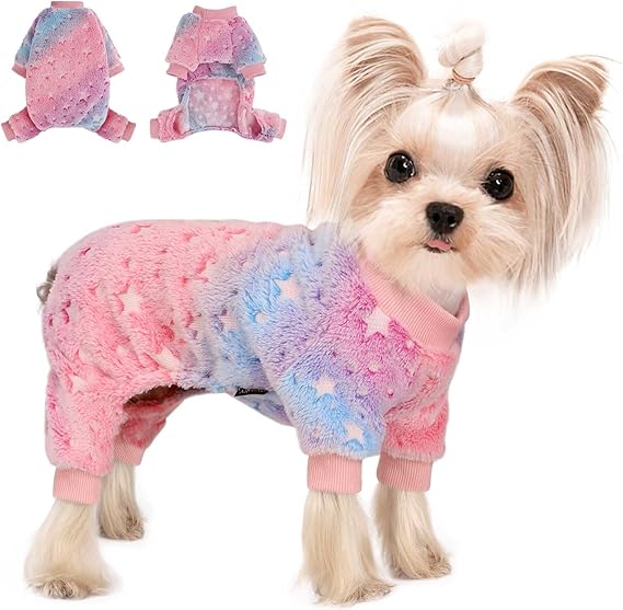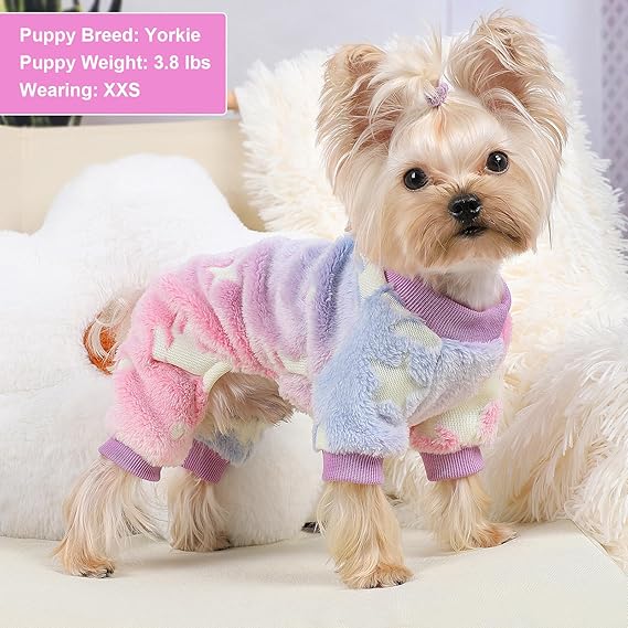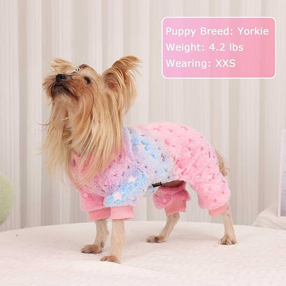 Dog Sweaters for Small Dogs Winter Pet Clothes Puppy Clothes Boy Girl Fleece Dog Pajamas Jumpsuits Doggie Outfits for Chihuahua Yorkie Cat Apparel (Star Pink, XX-Small)