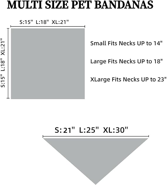 - Adjustable Size: 15*15inches Small fits necks up to 14". 18*18inches Large fits necks up to 18". 21*21inches Xlarge fits necks up to 23". Please measure your pet's neck and leave room to tie knot.