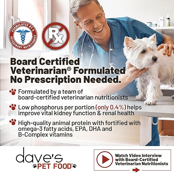 - NO PRESCRIPTION NEEDED. FORMULATED BY BOARD CERTIFIED VETERINARIAN NUTRITIONISTS. Renal dog food formulated by a team of board-certified veterinarians and nutritionists to be low phosphorus to help manage kidney concerns.