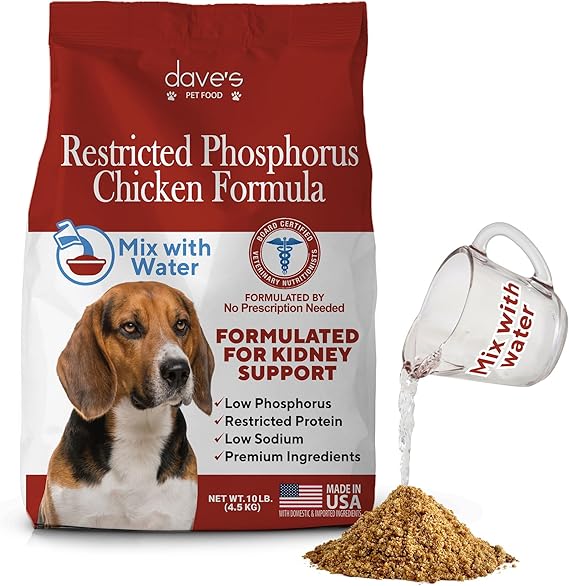 - REDUCE DAIRRESISTABLY TASTY WITH 17 ADDITIONAL VITAMINS & MINERALS. With chicken crumble mixed with liquid to make wet dog food, your dog will love the taste of Dave’s dog food. Kidney care dog food wet is fortified omega-3 fatty acids, EPA, DHA, & B12 vitamins to help replenish stores that are lost through increased urination.