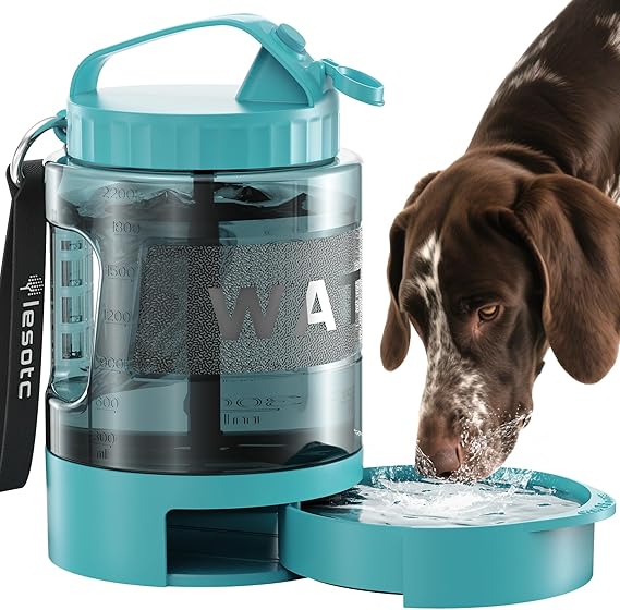 - 95 OZ Large Dog Water Bottle: Enhance your outdoor adventures with lesotc's oversized 95 oz dog water bowl dispenser. Whether you're camping, hiking, on a long road trip, walking, enjoying a day at the beach, or playing at the dog park, our large-capacity travel water bowl for dogs ensures your pet stays hydrated. It is essential for their health in hot weather and after active play. Minimize refills and extend outdoor adventures with your furry companion