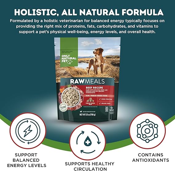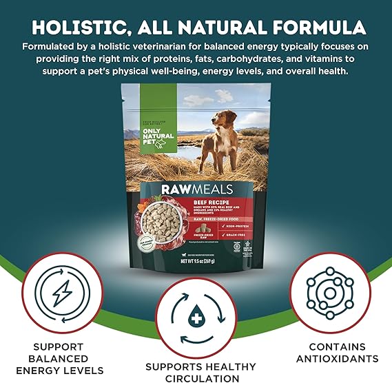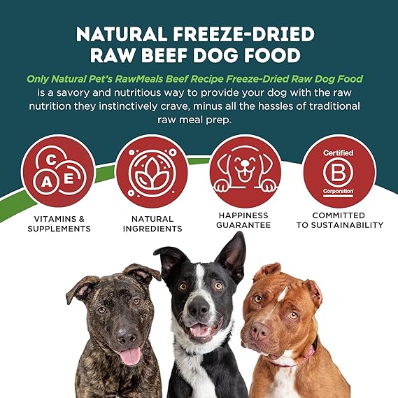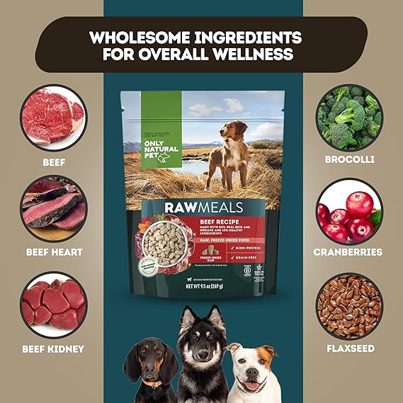Only Natural Pet RawMeals Beef Recipe Freeze-Dried Dog Food - High-Protein, Grain-Free, with Organ Meat, Fruits & Veggies - Complete Meal, Topper or Treat for All Breeds & Picky Eaters - 9.5 oz
